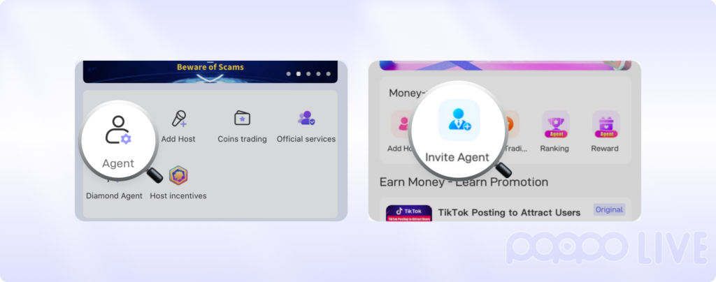 Poppo Live sincerely invites you who dream of making money to join our team and become our distinguished agent. Here, you will be the leader of your own agency as an entrepreneur, responsible for managing and training your hosts team. While helping them achieve wealth growth, you will also reap rich financial rewards. We have carefully designed a complete growth plan for each agent, aiming to support your growth in all aspects and help you gradually move towards the glorious path of becoming an excellent agency founder.
