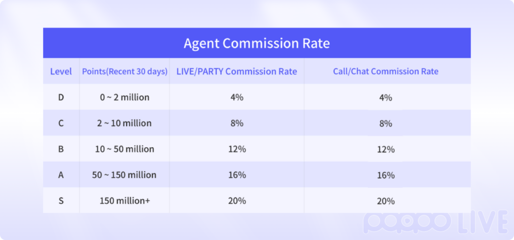 1. The agency earnings consist of the host’s income from video and voice calls, text chats, and gifts, and does not include rewards such as tasks and rankings issued by the platform.