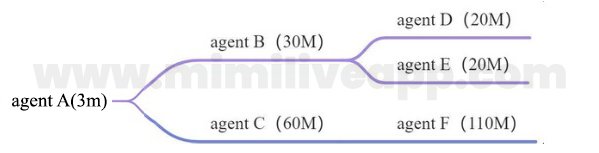 So Agent B is LEVEL A(30M+20M+20M=70M), and the commission rate is: 16%